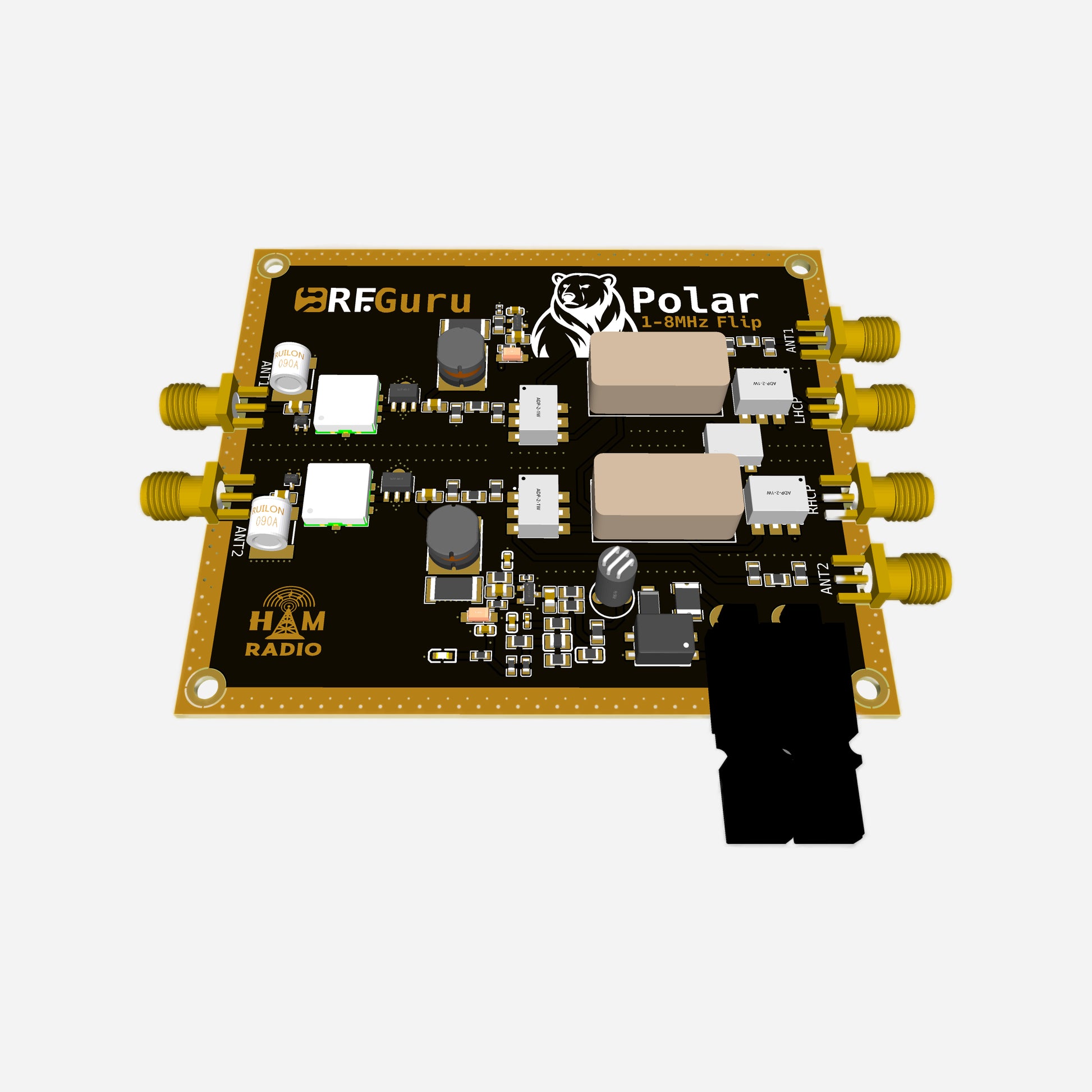 PolarFlip is a precision phasing device that accepts two matched linear antenna inputs and produces four simultaneous outputs: ANT1 (linear), ANT2 (linear), RHCP (Right-Hand Circular), and LHCP (Left-Hand Circular). It is designed for HF low-band and NVIS receive systems where polarization behavior dictates signal strength and stability.