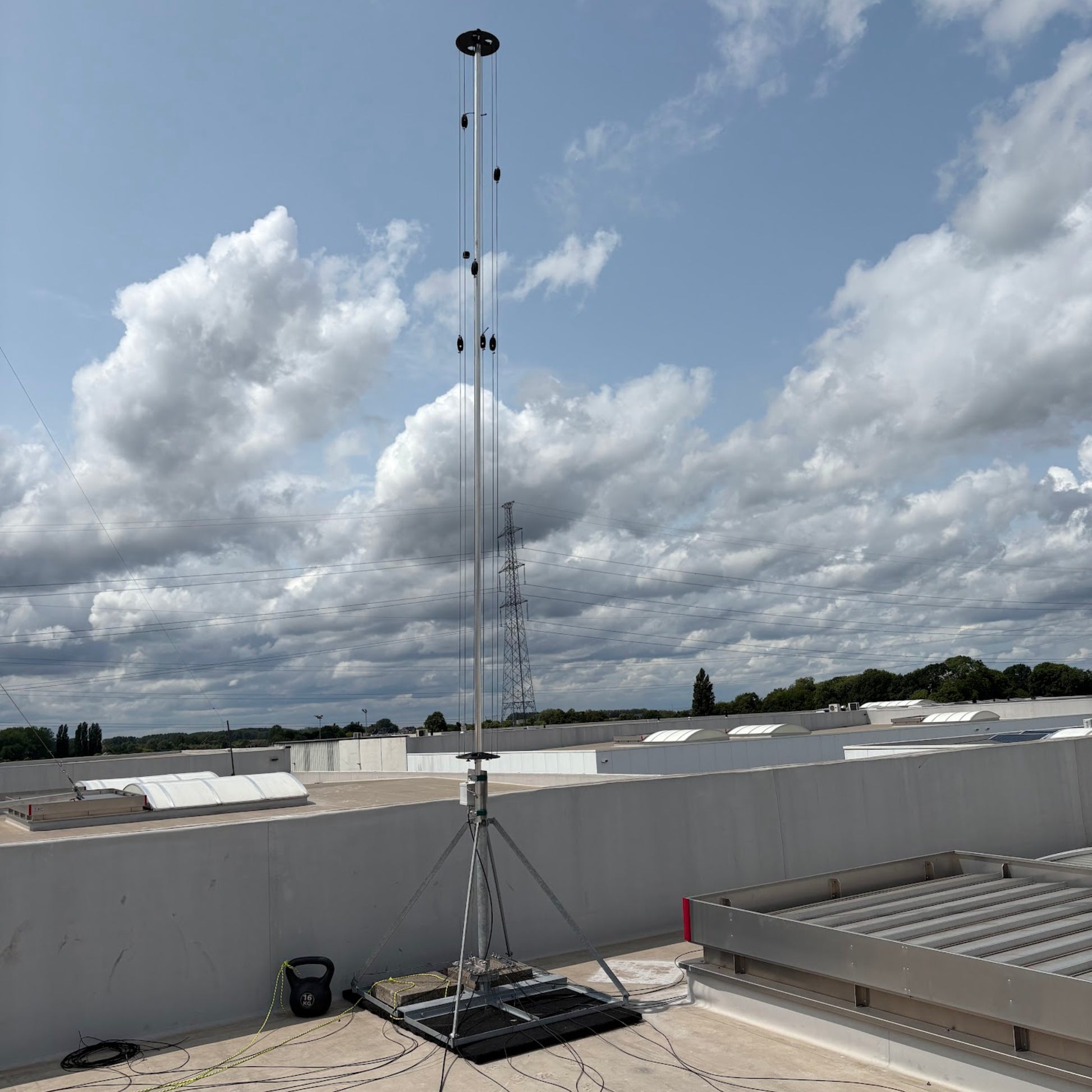 - Optional ballast frame: Freestanding mounting when no fixed mast is available (50×50 cm tiles, Ø60.3 mm pole, 1.1 m).